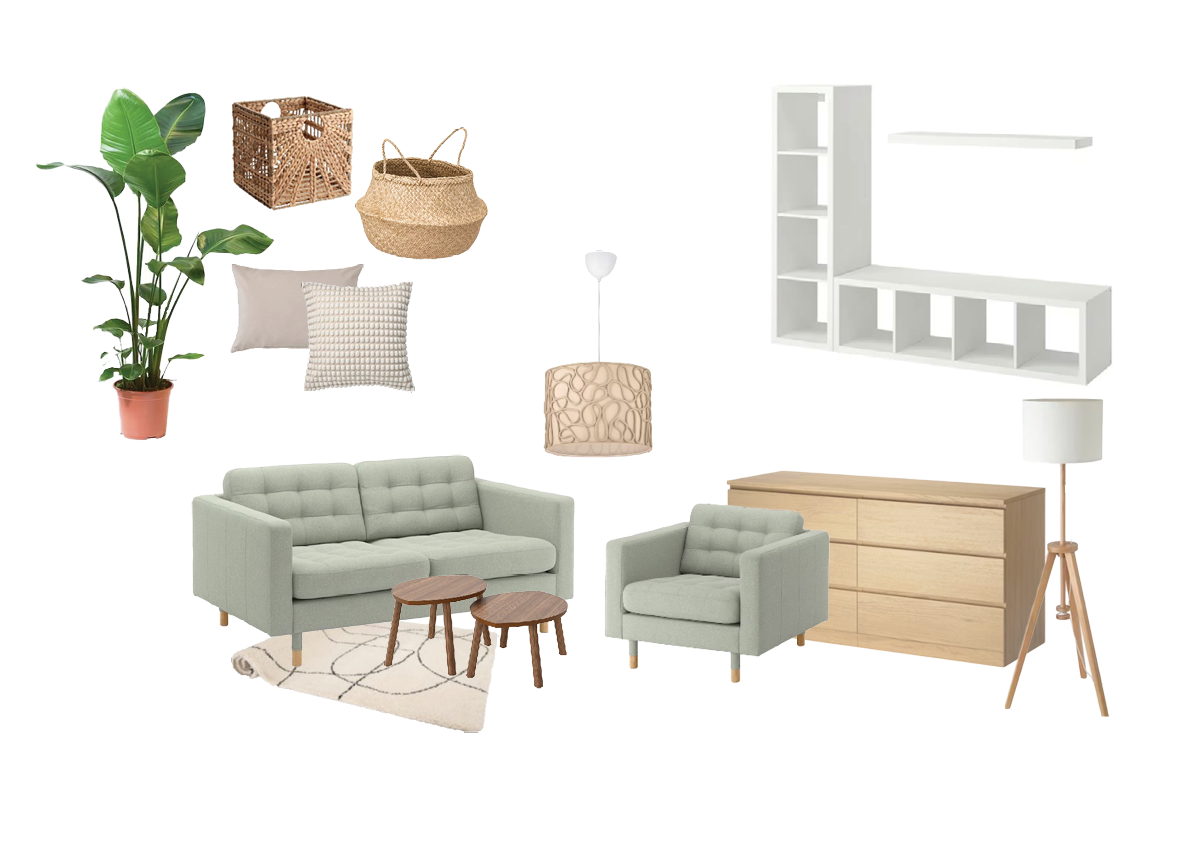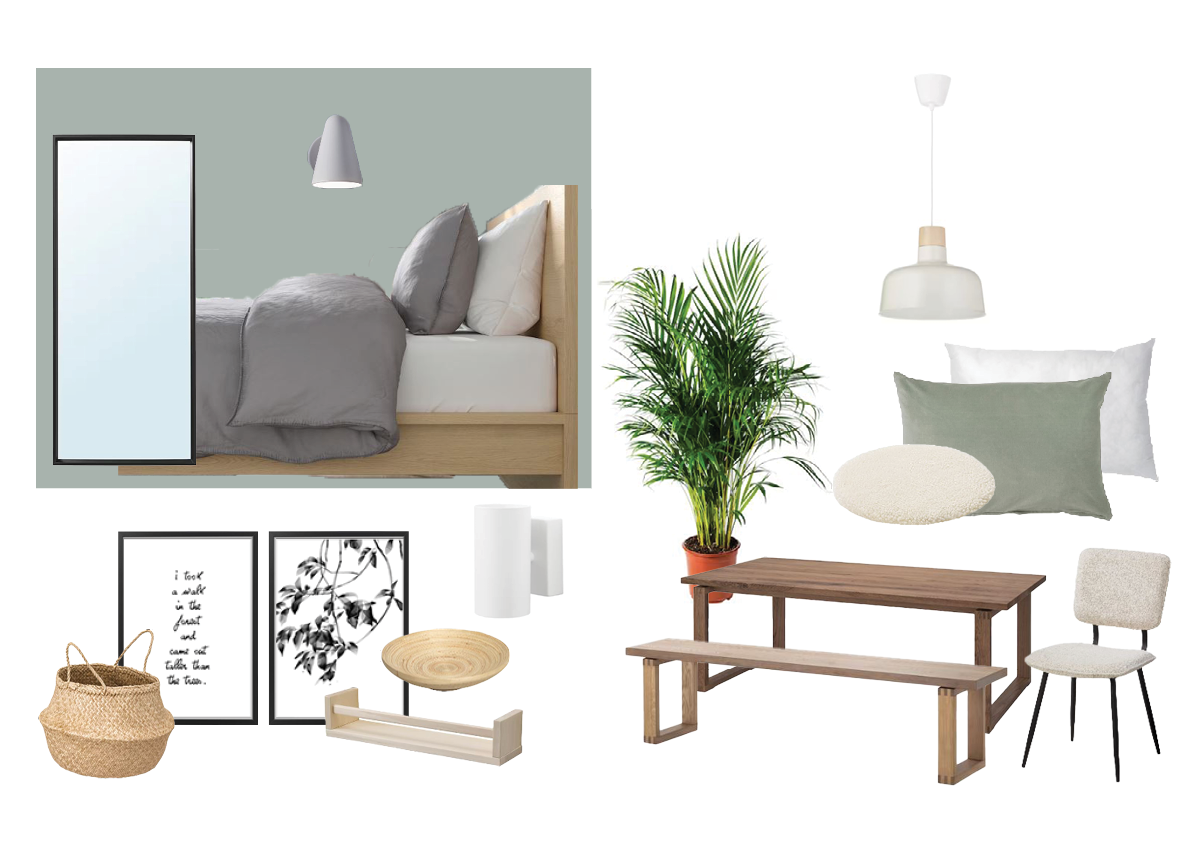 Daarna ben ik verder gegaan met het meubelvoorstel, je ziet heel veel vergrijsde kleuren, omdat ze allemaal dezelfde ondertoon hebben passen ze mooi bij elkaar en vormen ze één geheel.