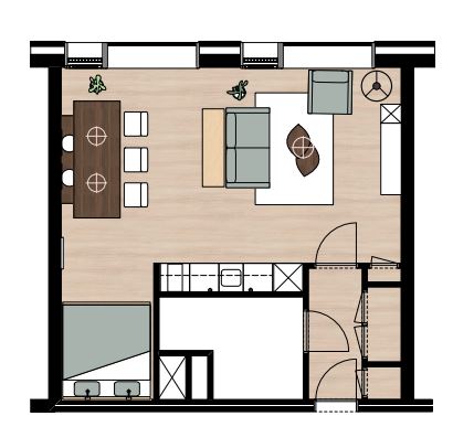 Daarna gingen we verder met de plattegrond, als interieuradviseur heb je de ruimte om meerdere plannen te maken. Daarom hieronder drie verschillende plannen weergegeven.